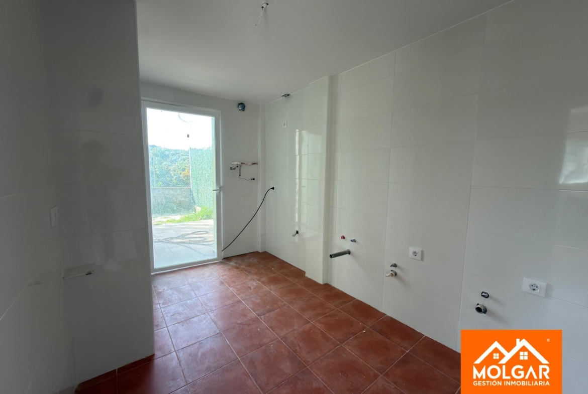 En la planta baja tenemos hall de entrada, cocina sin amueblar con salida a la parcela, baño completo, salón comedor con salida al exterior y un dormitorio.