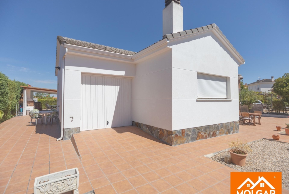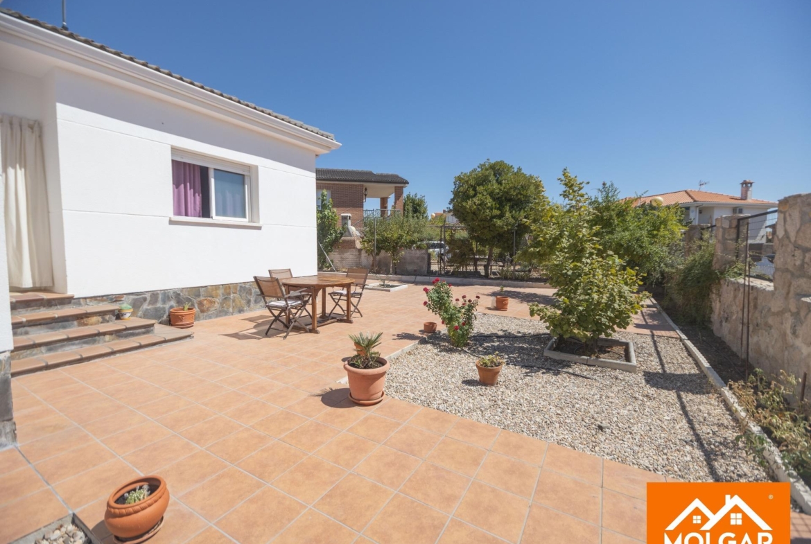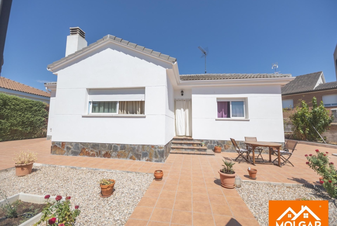 Molgar Gestión Inmobiliaria presenta en exclusiva esta magnífica vivienda unifamiliar de una planta, ubicada en una de las urbanizaciones más demandadas de la zona, caracterizada por su tranquilidad, seguridad y calidad de vida. La propiedad se asienta sobre una parcela totalmente plana de 555 m², ofreciendo un entorno cómodo, funcional y con múltiples espacios pensados para el disfrute tanto interior como exterior.