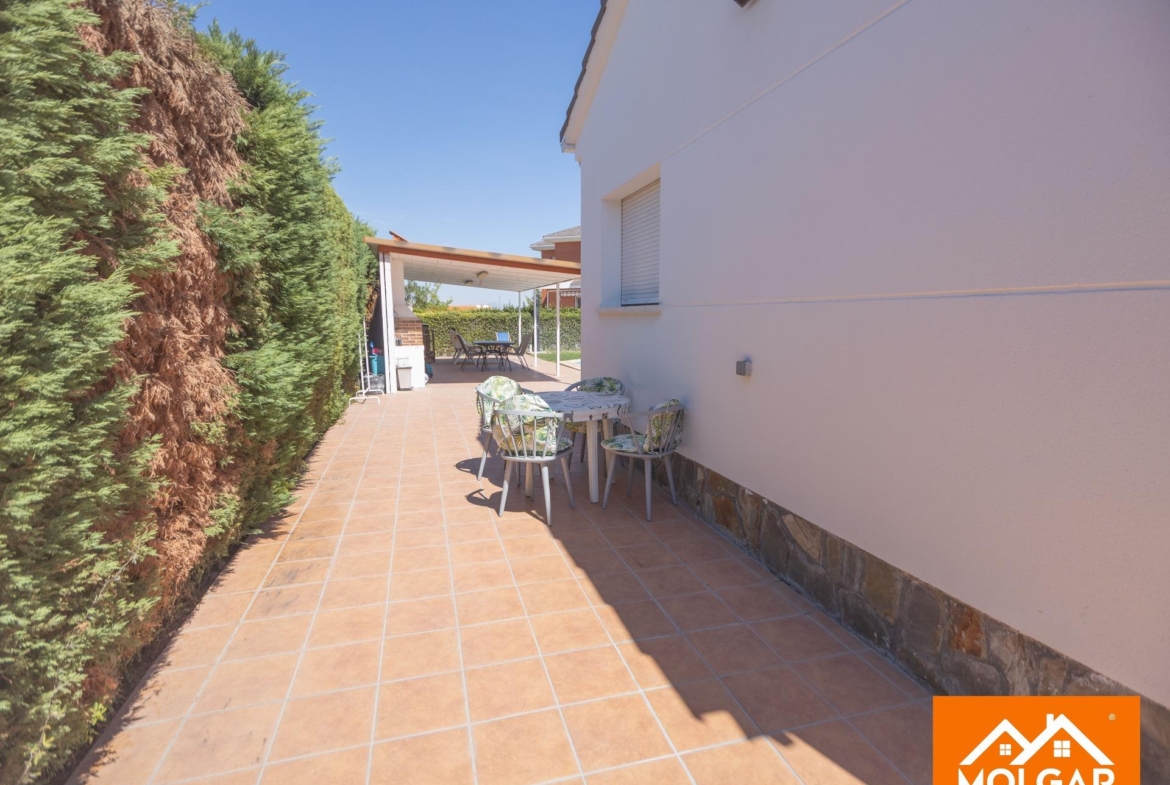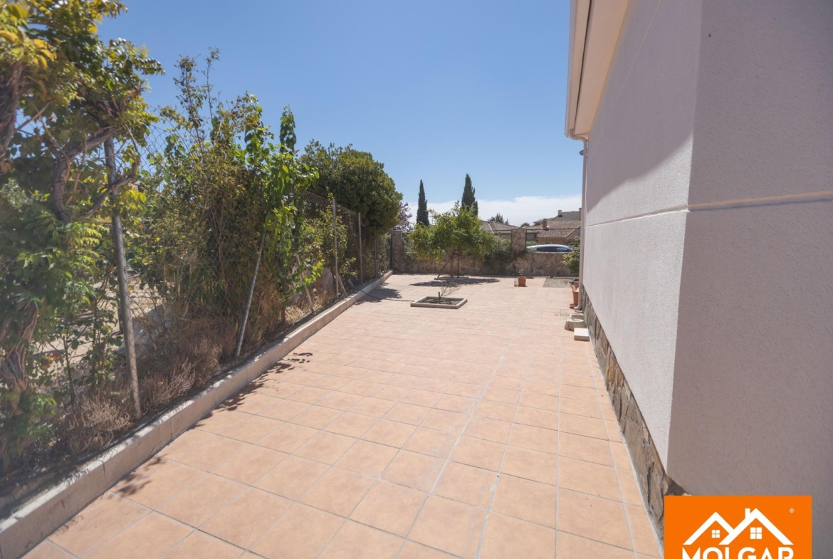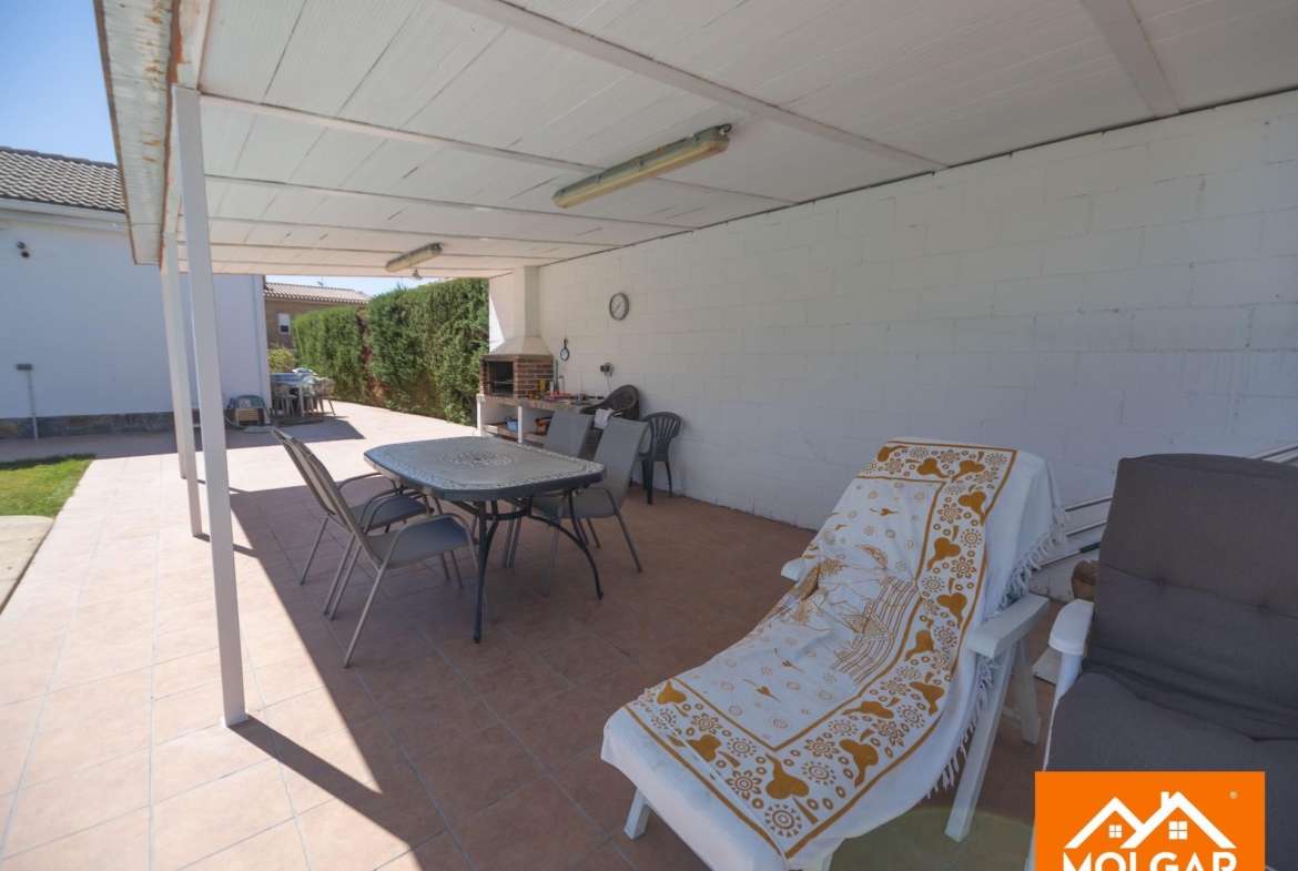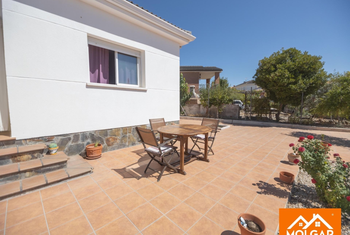 Molgar Gestión Inmobiliaria presenta en exclusiva esta magnífica vivienda unifamiliar de una planta, ubicada en una de las urbanizaciones más demandadas de la zona, caracterizada por su tranquilidad, seguridad y calidad de vida. La propiedad se asienta sobre una parcela totalmente plana de 555 m², ofreciendo un entorno cómodo, funcional y con múltiples espacios pensados para el disfrute tanto interior como exterior.
