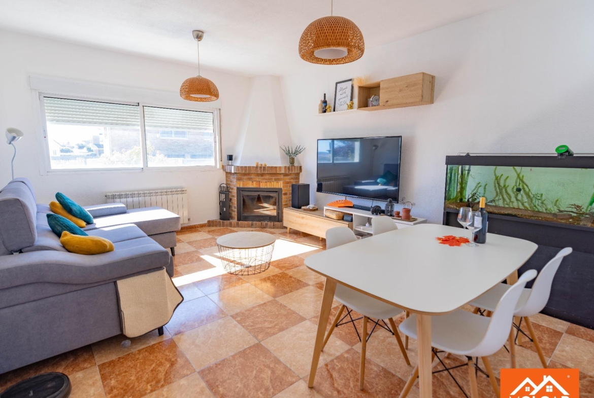 La vivienda cuenta con una distribución práctica y acogedora. Dispone de tres amplios dormitorios, un baño completo, salón-comedor con chimenea de leña, y cocina independiente perfectamente equipada. Todos los espacios están diseñados para aprovechar al máximo la luz natural, generando una sensación de amplitud y confort en cada estancia.